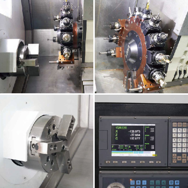 La machine-outil adopte une tourelle de 12/15 station et est équipée d'une tourelle BMT40 / ER25. La vitesse maximale de la tête de puissance atteint 4000 tr / min et a un couple de 7,7 N · m, ce qui peut répondre aux besoins de traitement des pièces complexes. L'application de la tourelle de puissance permet à la machine-outil de terminer plusieurs processus tels que le fraisage, le forage et le tapotement dans un seul serrage, l'amélioration considérablement de l'efficacité du traitement et la réduction des erreurs et l'amélioration de la cohérence des produits.